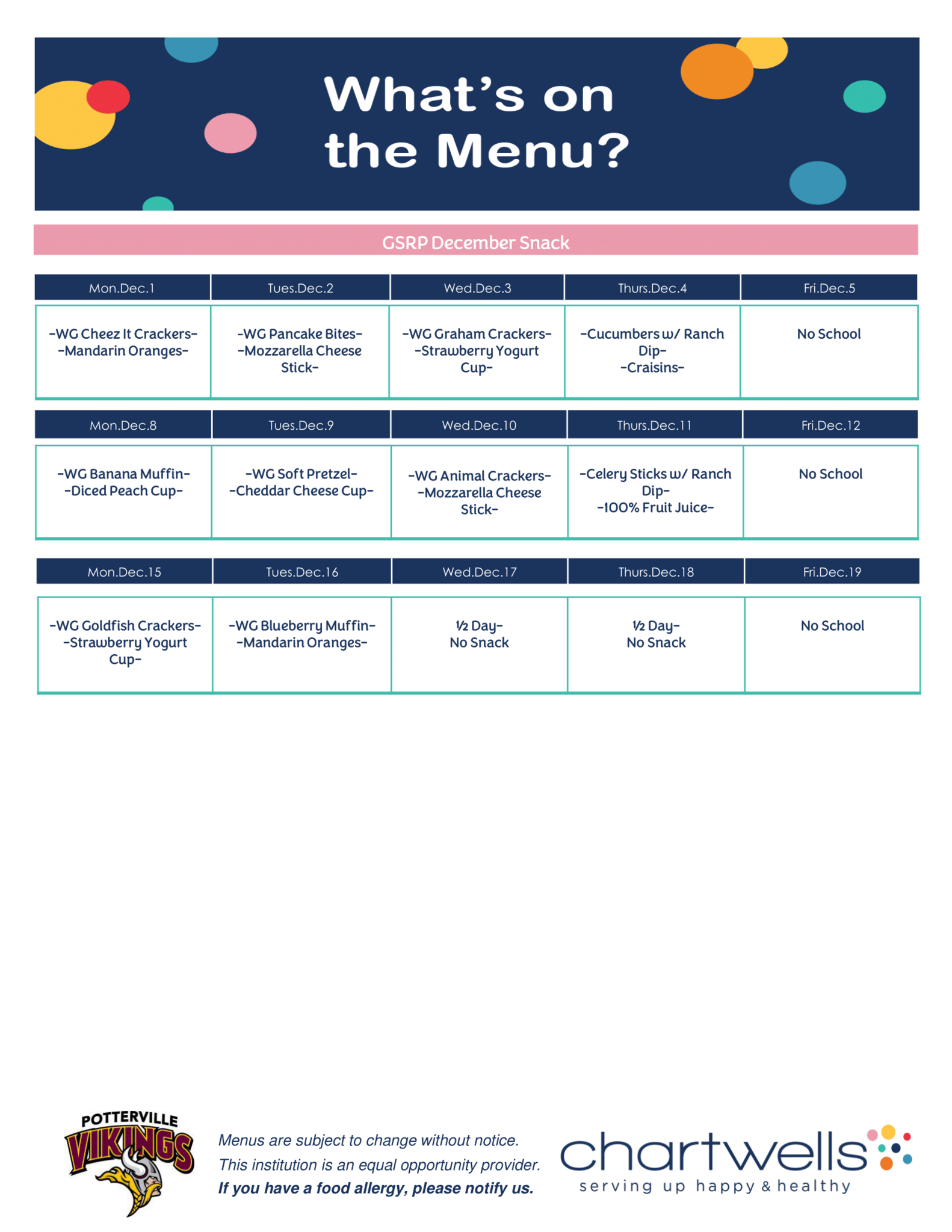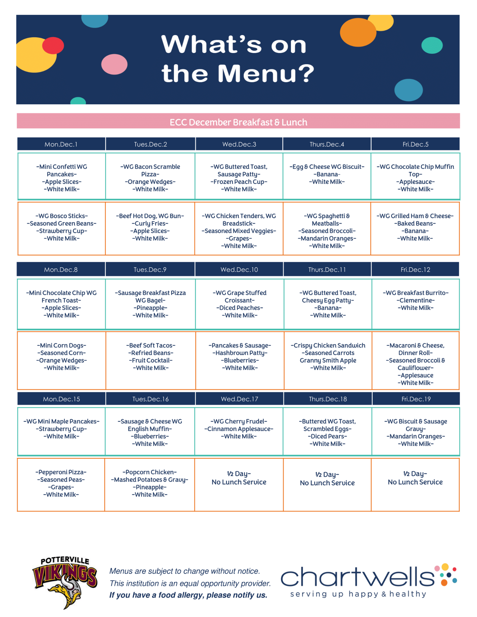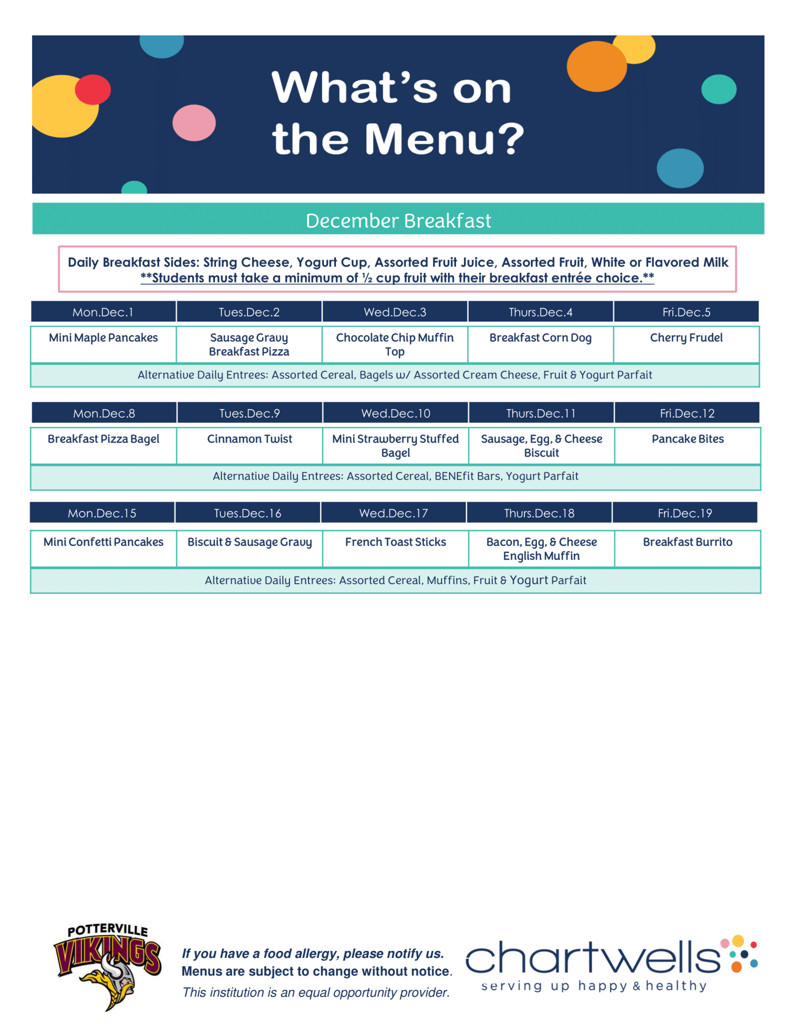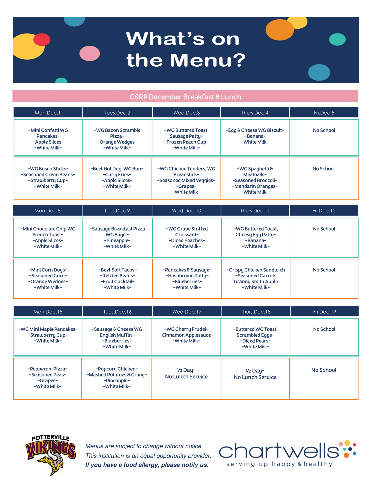 Our goal every day is to make sure that Potterville students leave the cafeteria happier and healthier than when they came in!